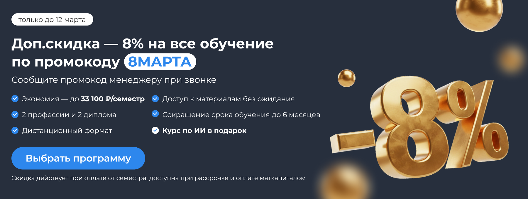 Доп.скидка 8% на все обучение!