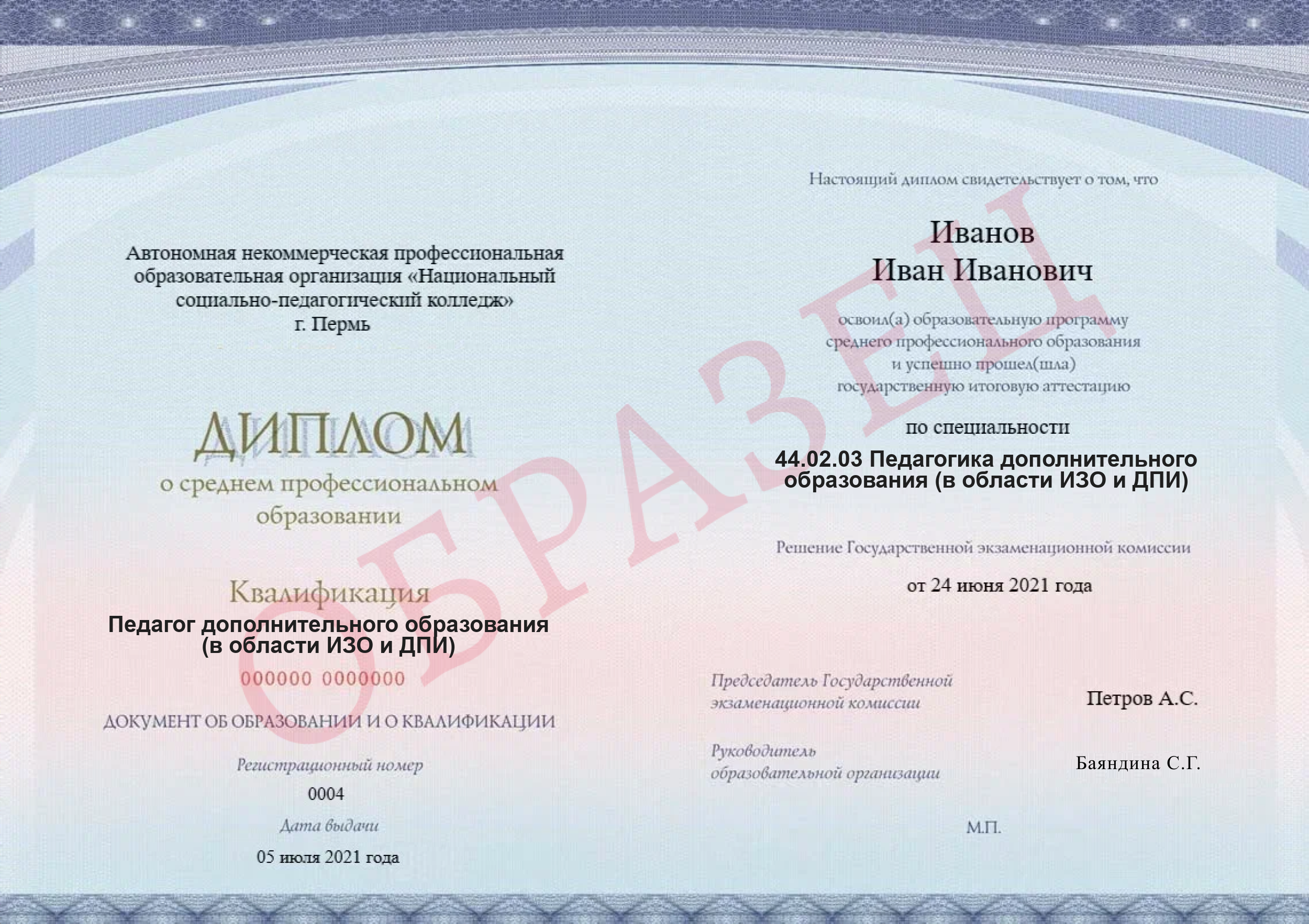 Студент осваивает специальность «Педагогика дополнительного образования (в области ИЗО и ДПИ)», а на последнем курсе бесплатно проходит профпереподготовку по программе «Основы дизайна интерьера».
