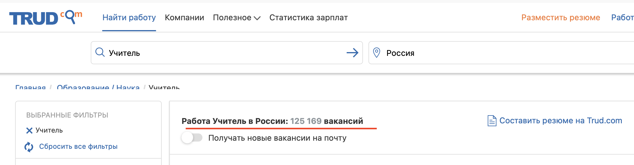 Cкриншот с сайта Russia.trud.com.