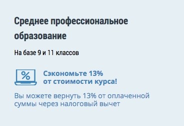 Вы можете получить налоговый вычет в размере 13% от стоимости обучения