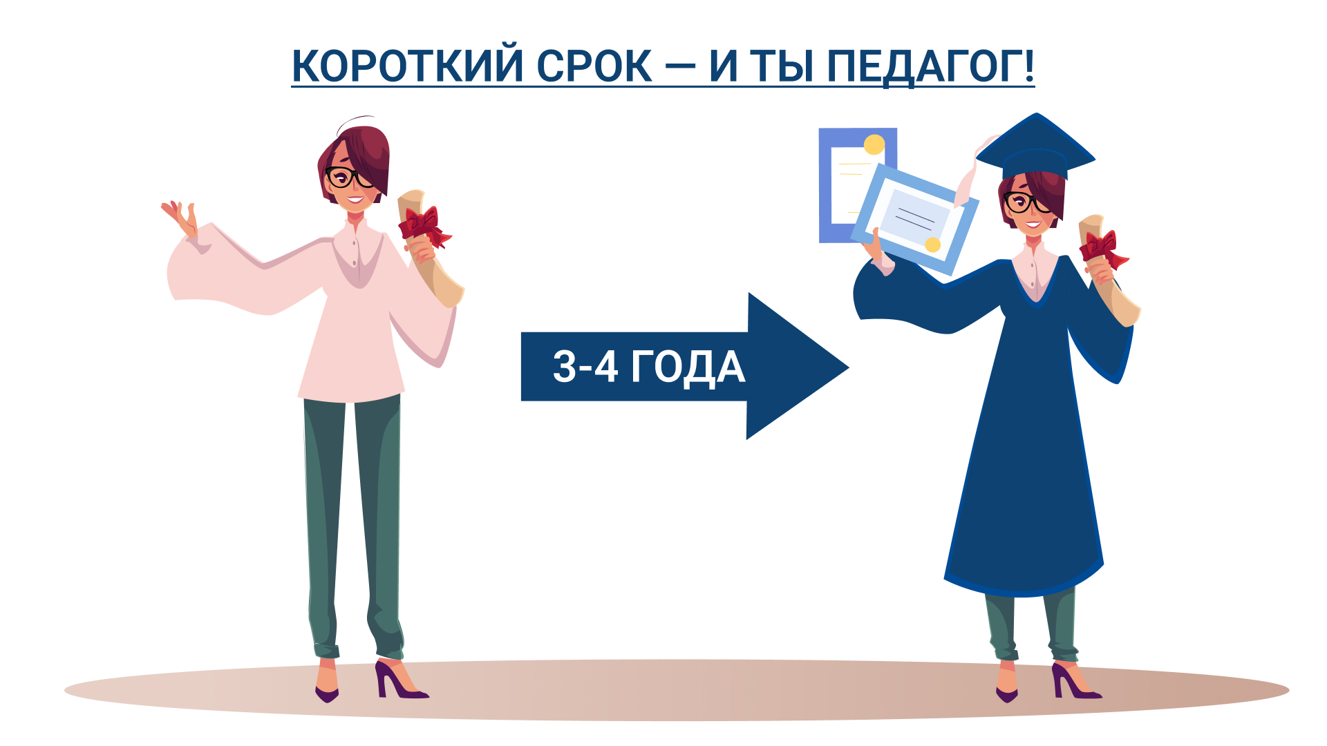 Максимально короткие сроки обучения.После 9 класса — 3 года 11 месяцев. После 11 класса — 2 года 11 месяцев.