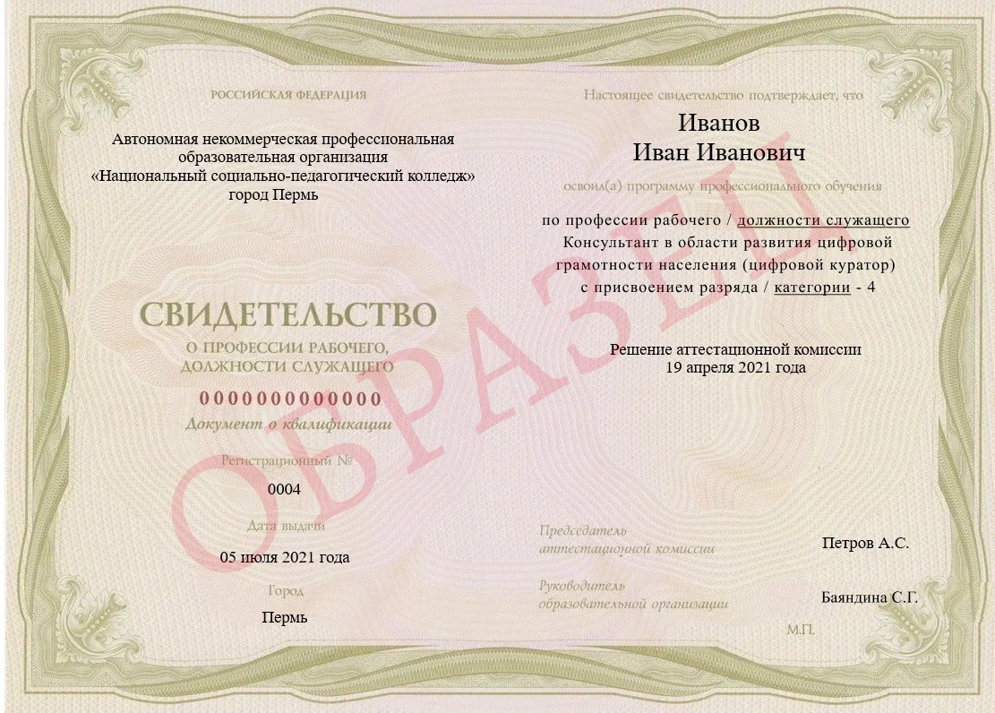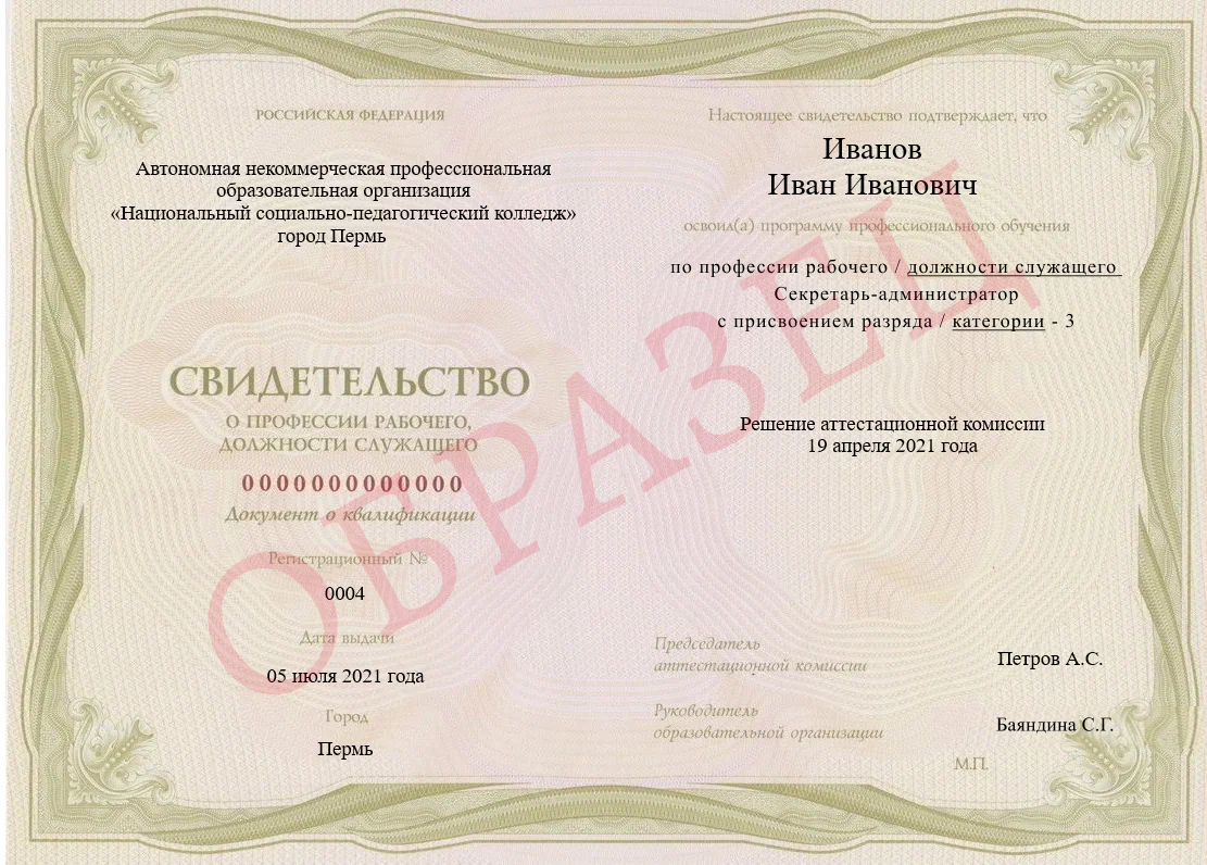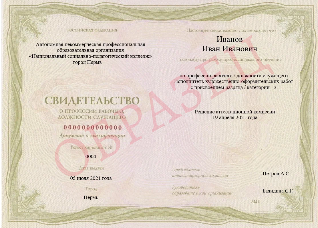 Свидетельство по профессии рабочего, должности служащего — документ, который подтверждает, что выпускник освоил программу профессионального обучения.